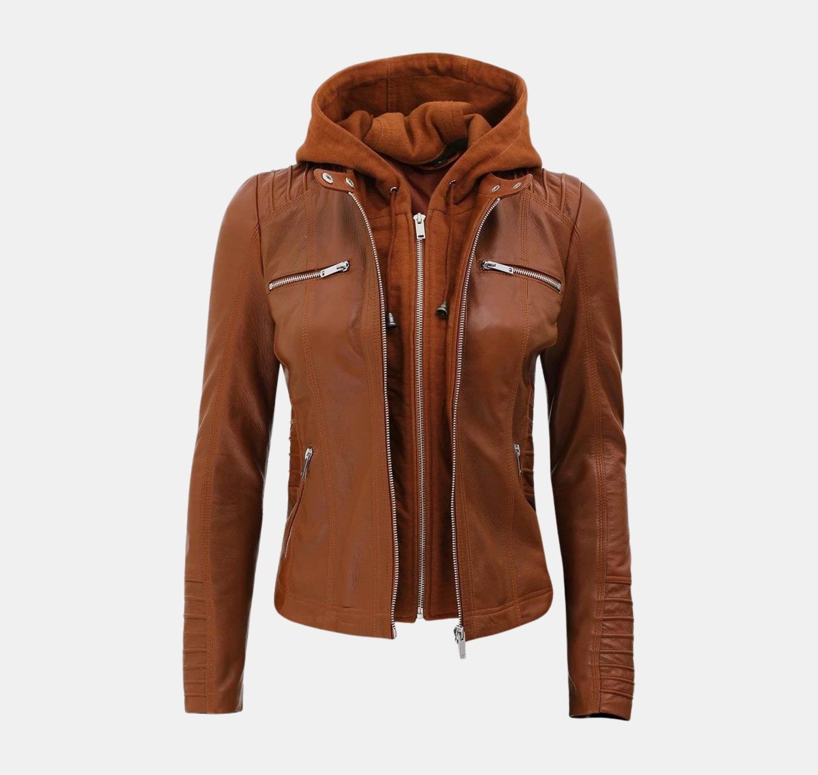 Enjoy the ideal combination of style and value in our Cognac Blaze Slim Fit Leather Jacket with Detachable Hood. Crafted from excellent cognac leather, this jacket has a modern and sleek design that is suitable for any occasion. The adjustable drawstrings and detachable hood allow you to modify your outfit based on the weather or your style. With four outer pockets and extra inner storage, this jacket is both useful and attractive.